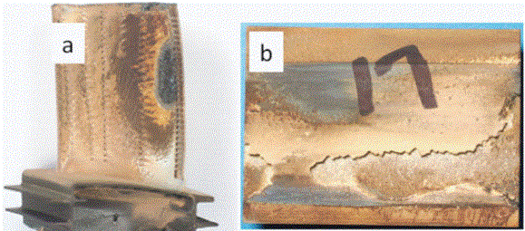 圖1 不帶陶瓷涂層葉片(左)和帶熱障陶瓷涂層葉片(右)服役后表面狀態(tài)對(duì)比