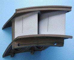 涂層厚度分布與渦輪葉片的服役工況息息相關(guān)?紤]到渦輪葉片氣動(dòng)性能、內(nèi)外部換熱及強(qiáng)度等因素,某些渦輪葉片表面需局部涂敷熱障涂層(如圖2所示),需設(shè)計(jì)制造專用的局部涂敷夾具。對(duì)于某些葉片其表面需全部涂敷熱障涂層,需采用公轉(zhuǎn)結(jié)合自轉(zhuǎn)及專用涂敷夾具以實(shí)現(xiàn)涂層厚度的相對(duì)均勻分布(如圖3所示)。