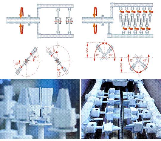 圖3 全部熱障涂層葉片運(yùn)動(dòng)方式及專用涂敷夾具